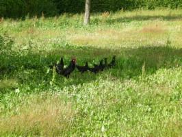 Sie werden seit Jahrhunderten im Bergischen Land gezüchtet und sollen aus der Kreuzung alter einheimischer Landrassen mit spanischen Hühnern entstanden sein. An Wind und Wetter sind sie bestens angepasst, den größten Teil ihres Futters suchen sie sich bei Freilandhaltung selbst. Der nach einer Seite „schlotternde“ Kamm der Hennen gab der Rasse den Namen.